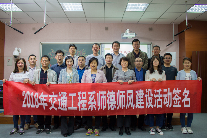 为认真贯彻落实学校关于师德师风建设要求,进一步加强交通系师德师风建设,提高教师的职业道德素养和教育教学质量,提升教师队伍的整体素质,交通工程系于4月26日下午在笃行楼录播室隆重举行2018年交通工程系师德师风...